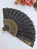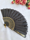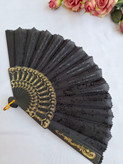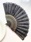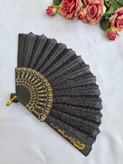ترکیب رنگ مشکی با طرحهای متنوع، جلوهای خاص به این بادبزن داده است و آن را برای استفاده در مراسمها، مهمانیها، سفر مناسب کرده است.