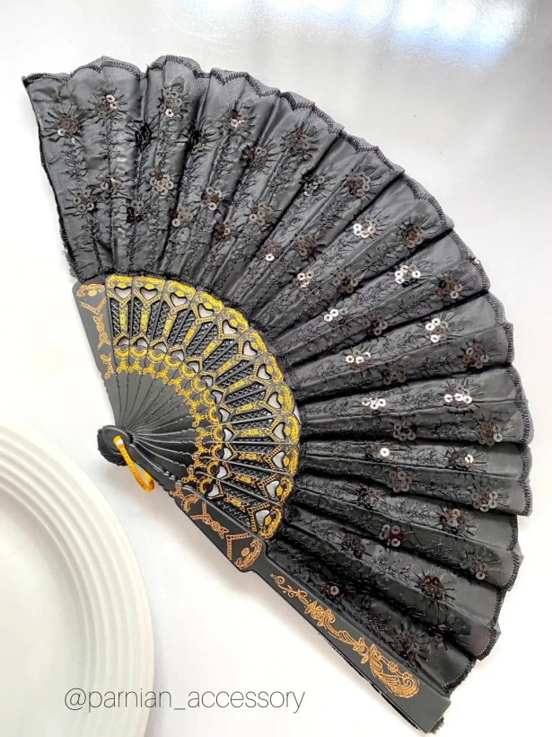 بادبزن مجلسی مشکی پولکدار با کیفیت