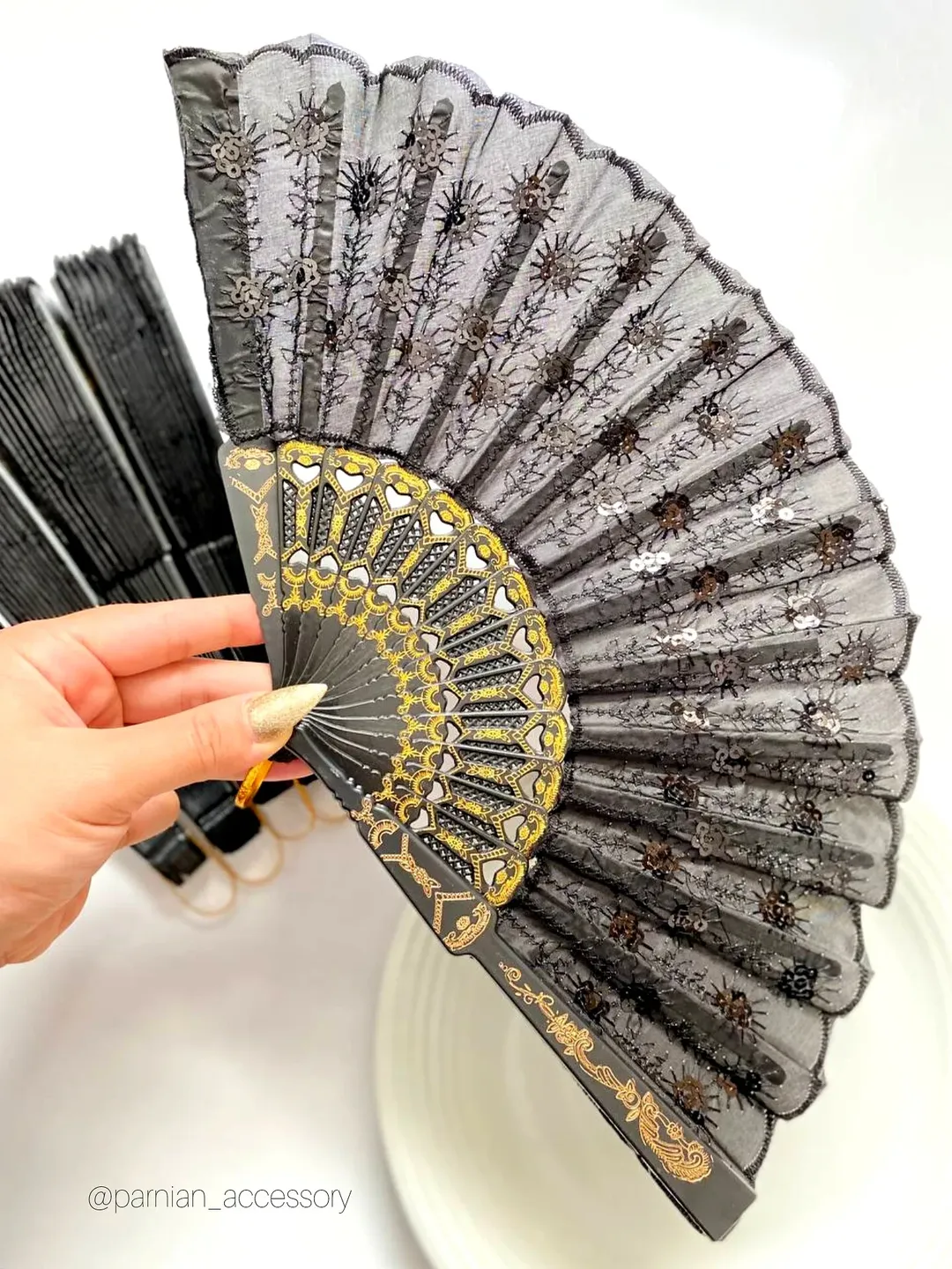 بادبزن مجلسی مشکی پولکدار با کیفیت