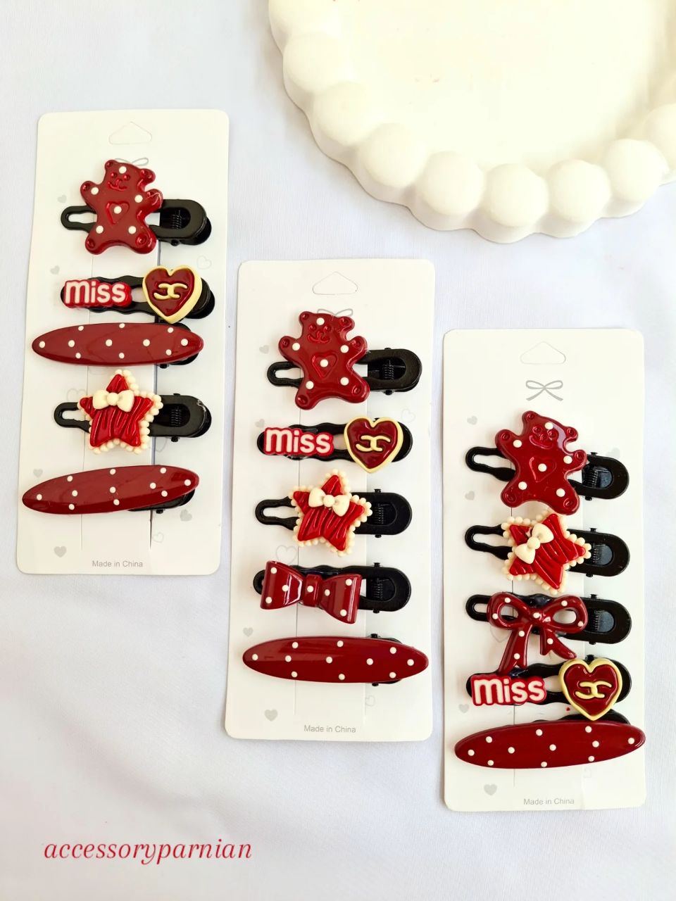 ست گیره انبری دخترانه فانتزی قرمز فلزی | پک گیره انبری فلزی قرمز فانتزی
