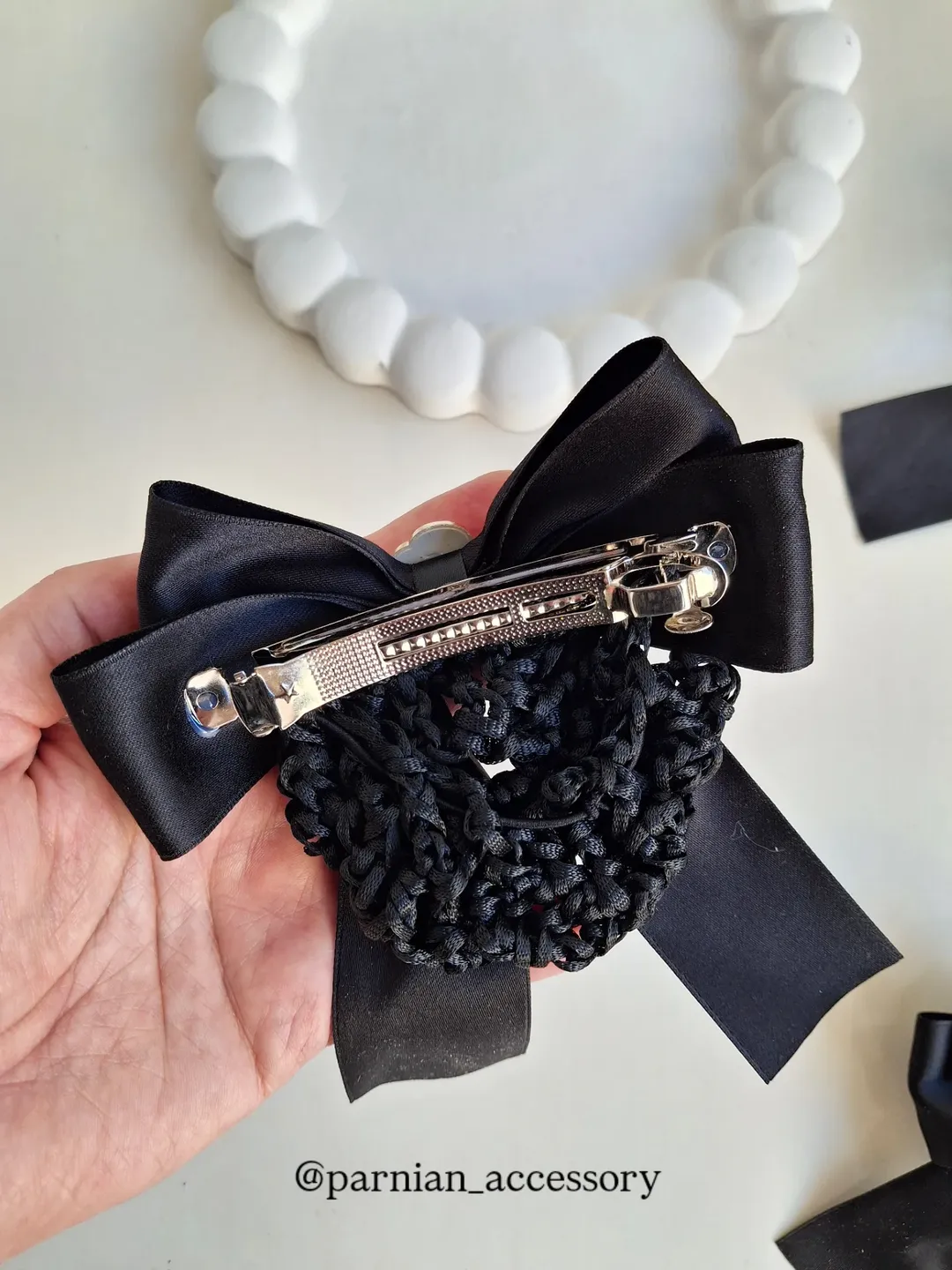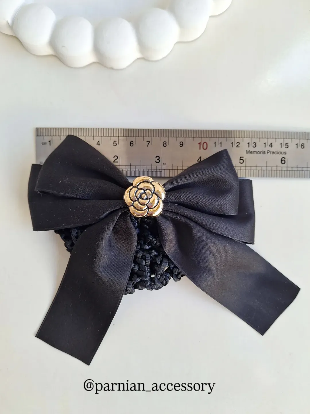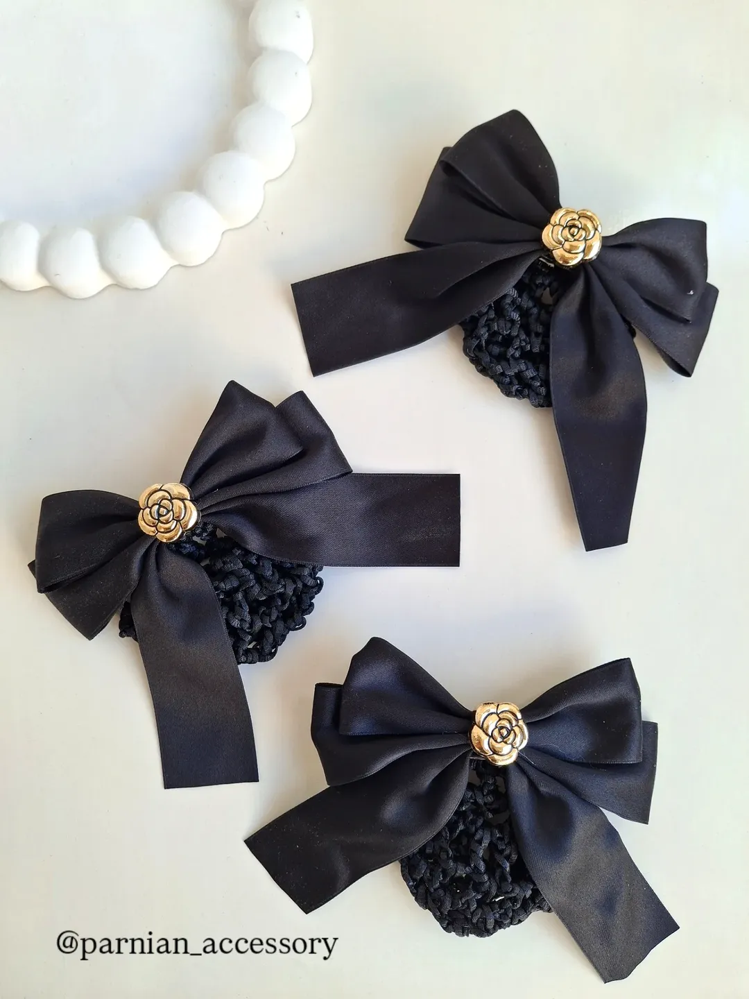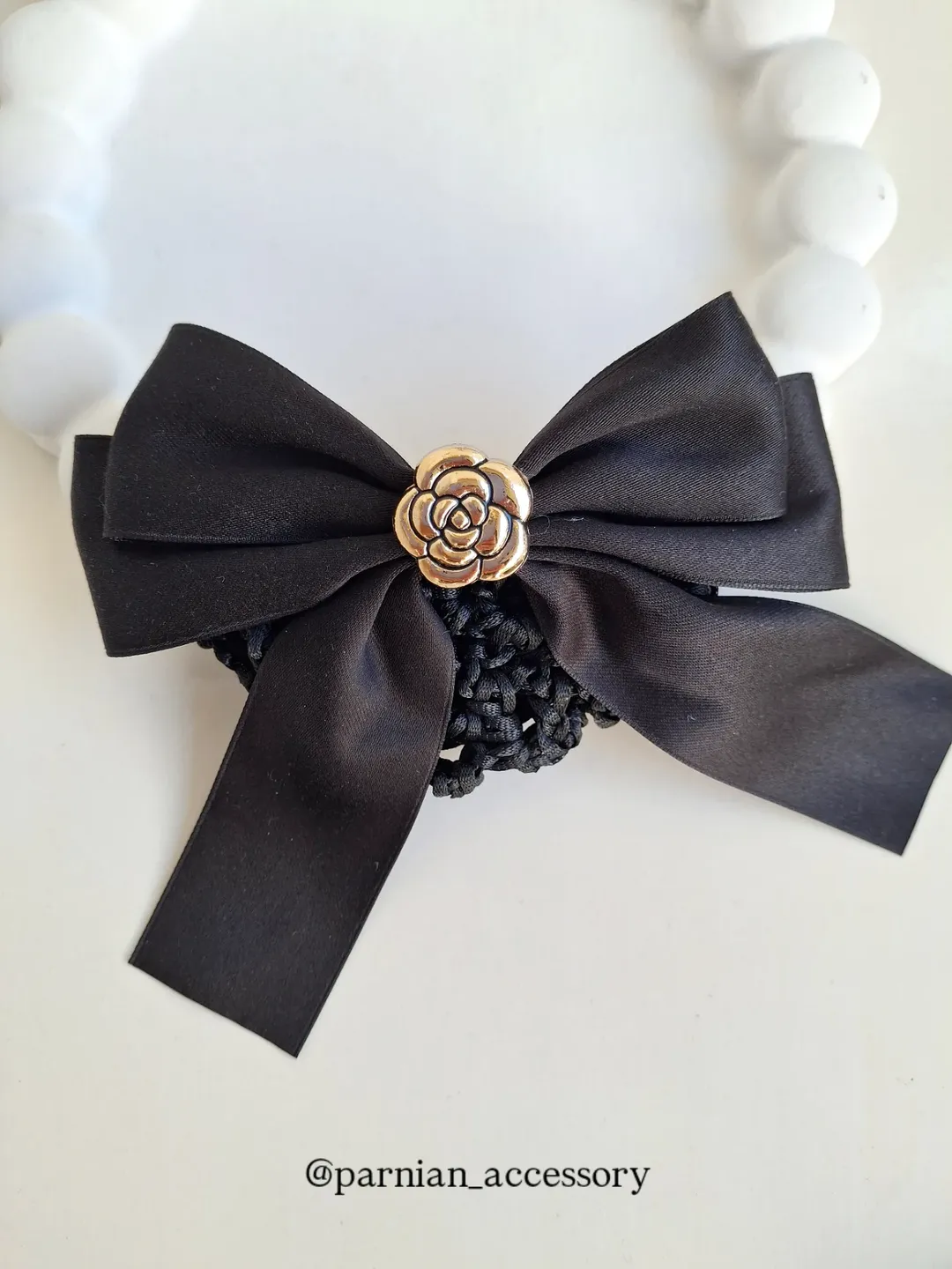 گیره فرانسوی تور دار|گیره فرانسوی کیسه دار گل رز و پاپیون