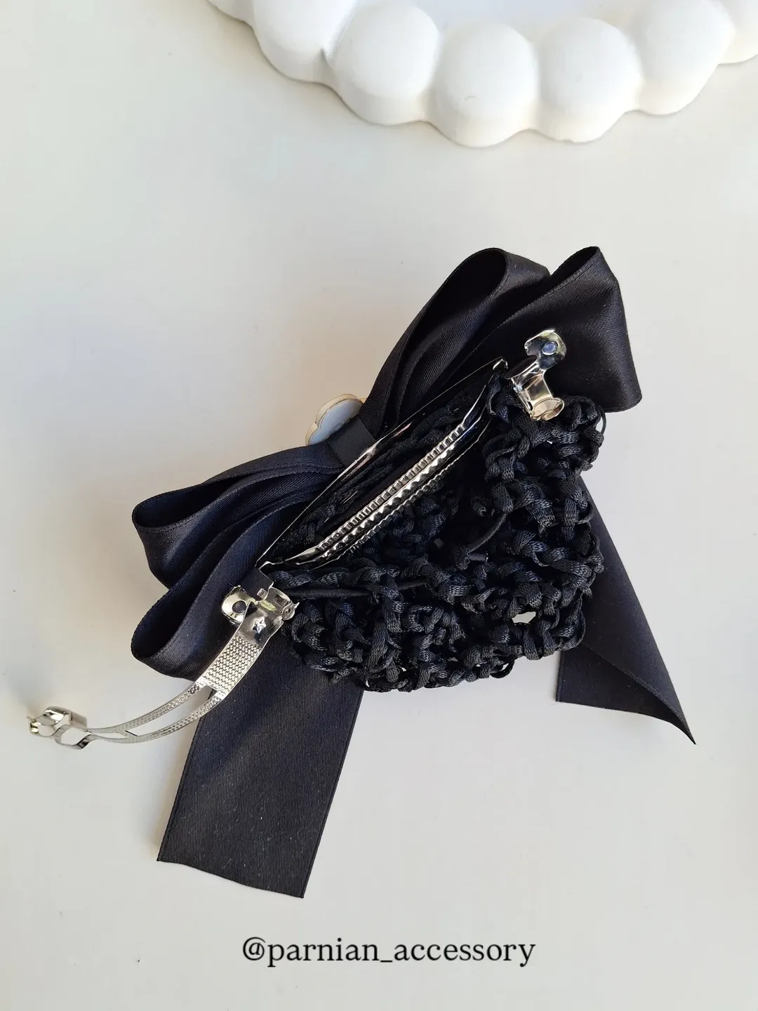 گیره فرانسوی که یه کیسه توری همراهش هست . براحتی موهاتو ببند و دنباله شونو تو کیسه خوشگل بذار ... یه استایل شیک و پیک و مرتب و سه سوته باهاش بزن.