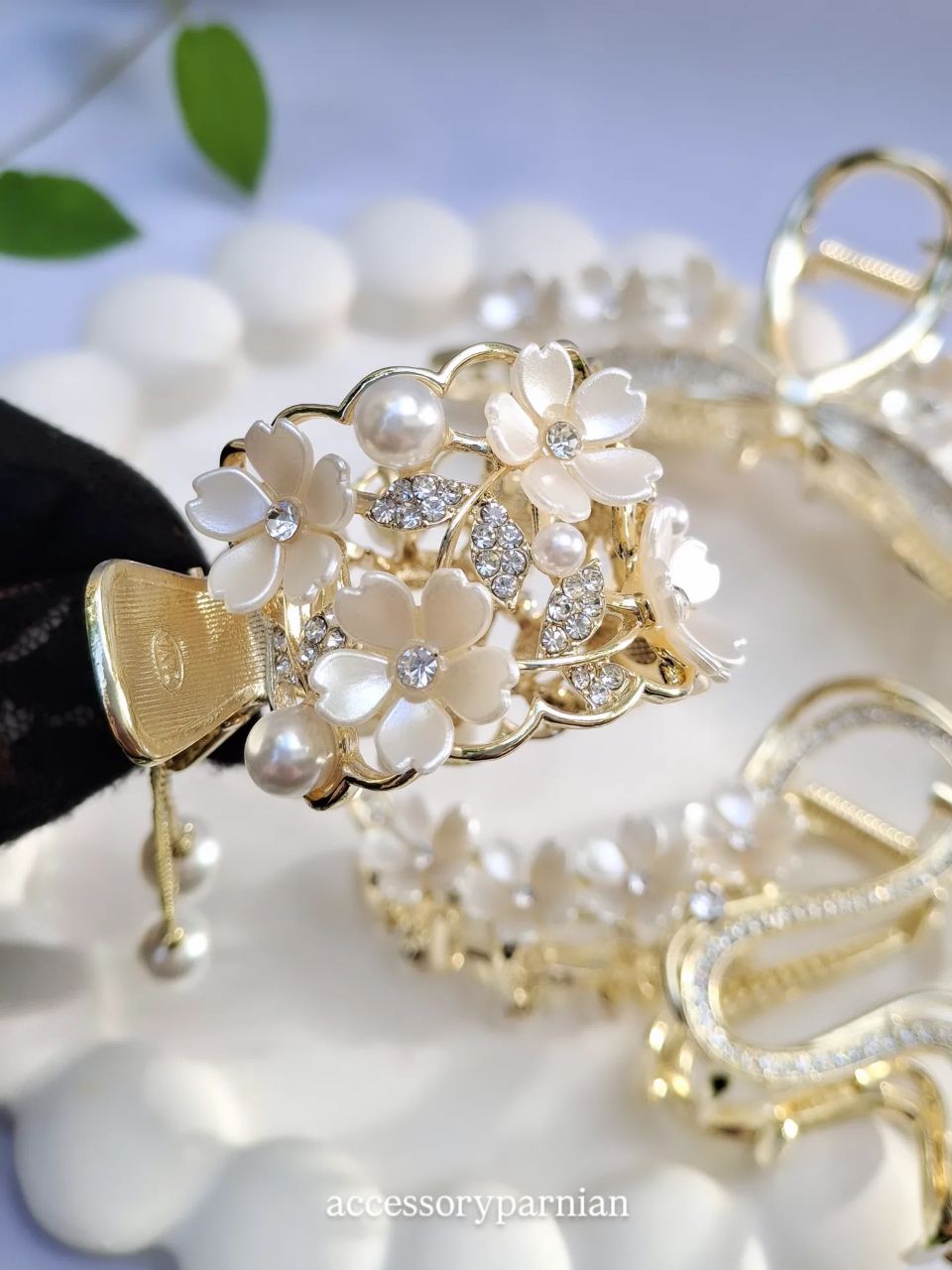 گیره دم اسبی شکوفه سفید برند زایا | گیره سامورایی شکوفه سفید برند زایا