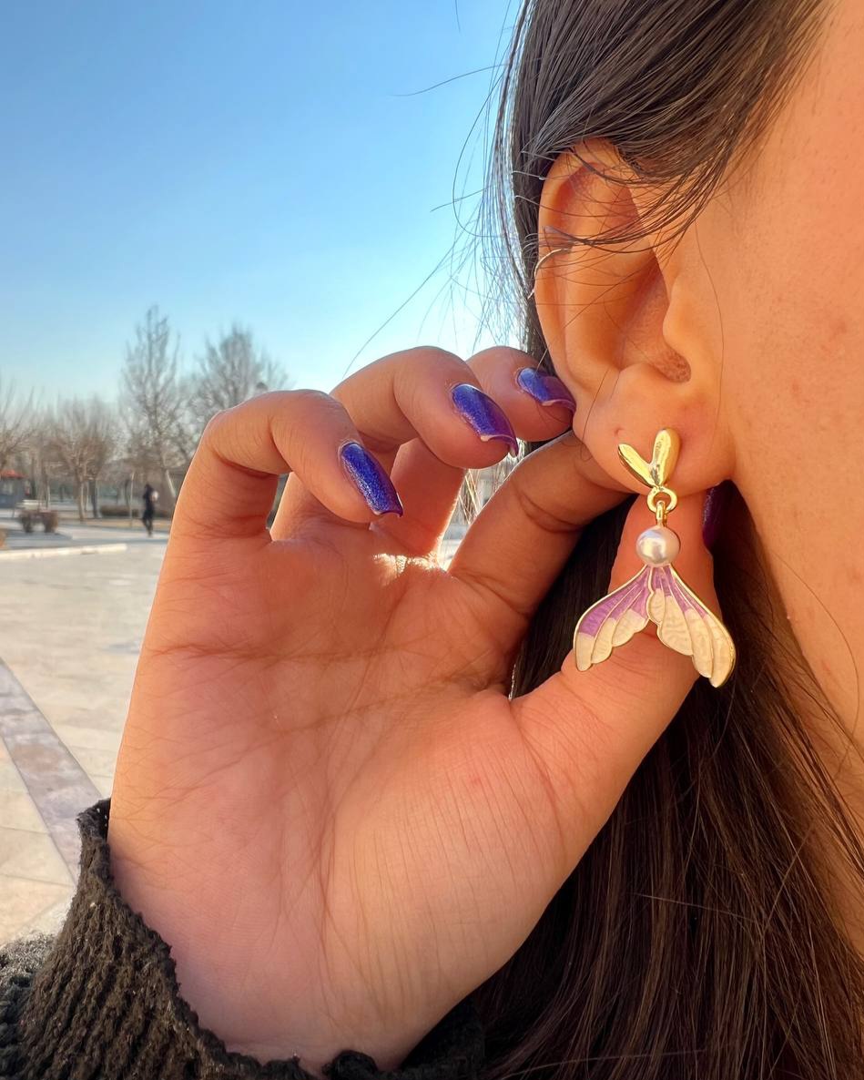گوشواره یلدایی میناکاری زرشکی و سفید گرد با شکوفه های ریز و میخ نقره ۹۲۵